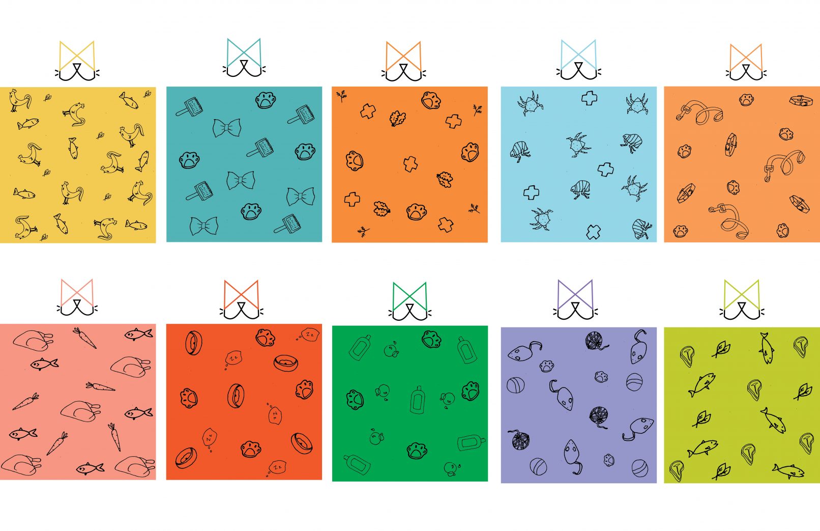 The project includes 10 package designs, spanning boxes, bags, cans, bottles, and tags. The concept for these cat wellness products came from becoming a new cat owner, and how it’s tricky to find products in pet stores that aligns with the quality of care that we want to provide our companion animals. The collection of package designs includes vibrant, visually appealing colors that feature unique, playful doodles that correlate to the contents of each package.